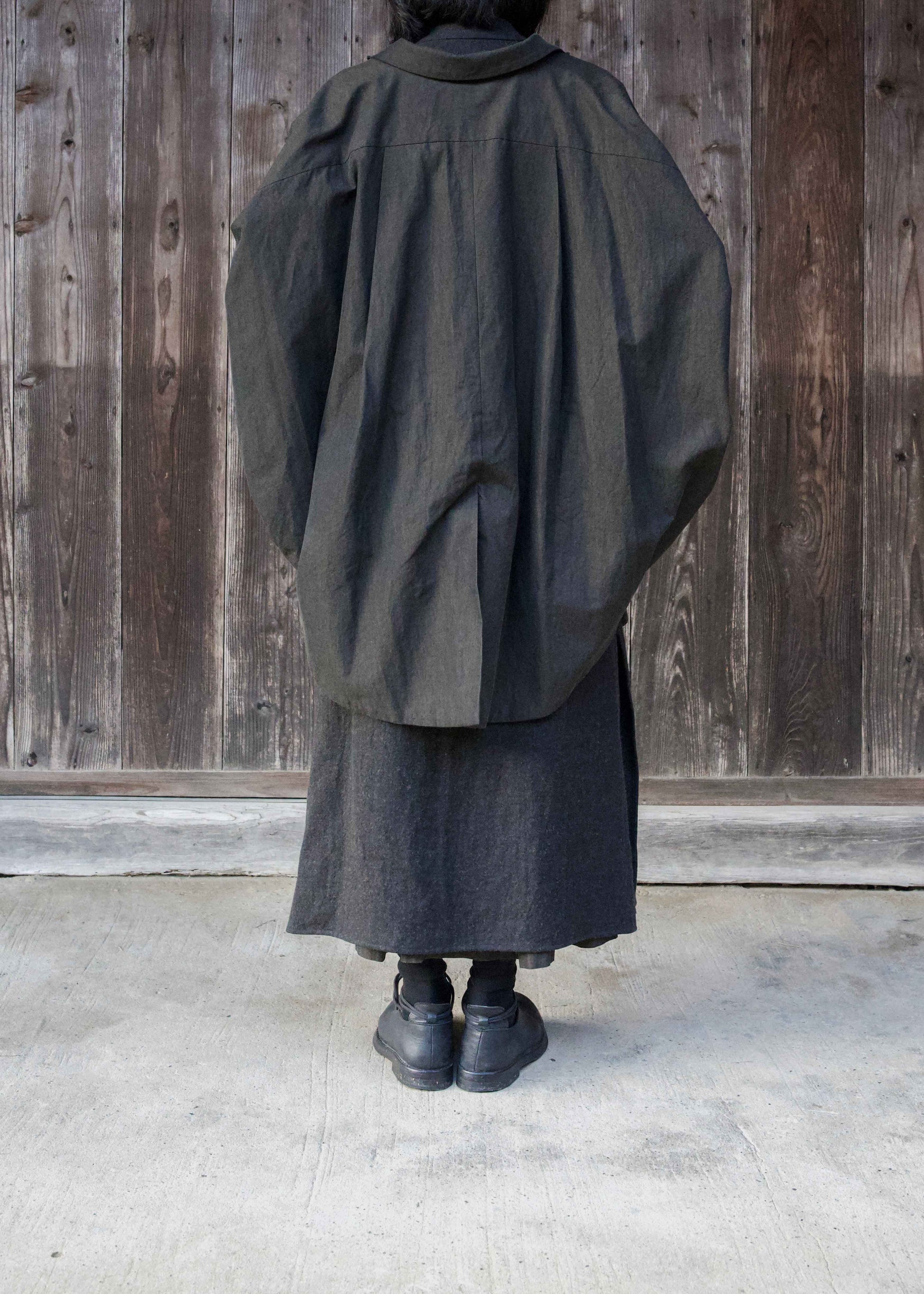 Woven by a weaver in Nishiwaki City, Hyogo Prefecture, renowned for its yarn-dyed cotton. The colour selected from countless yarn shades was reportedly a ‘colour woven for the first time’, resulting in a captivating fabric with depth created by the layered shades of chambray. The thickness and texture were also discussed during production, making this a truly unique fabric.