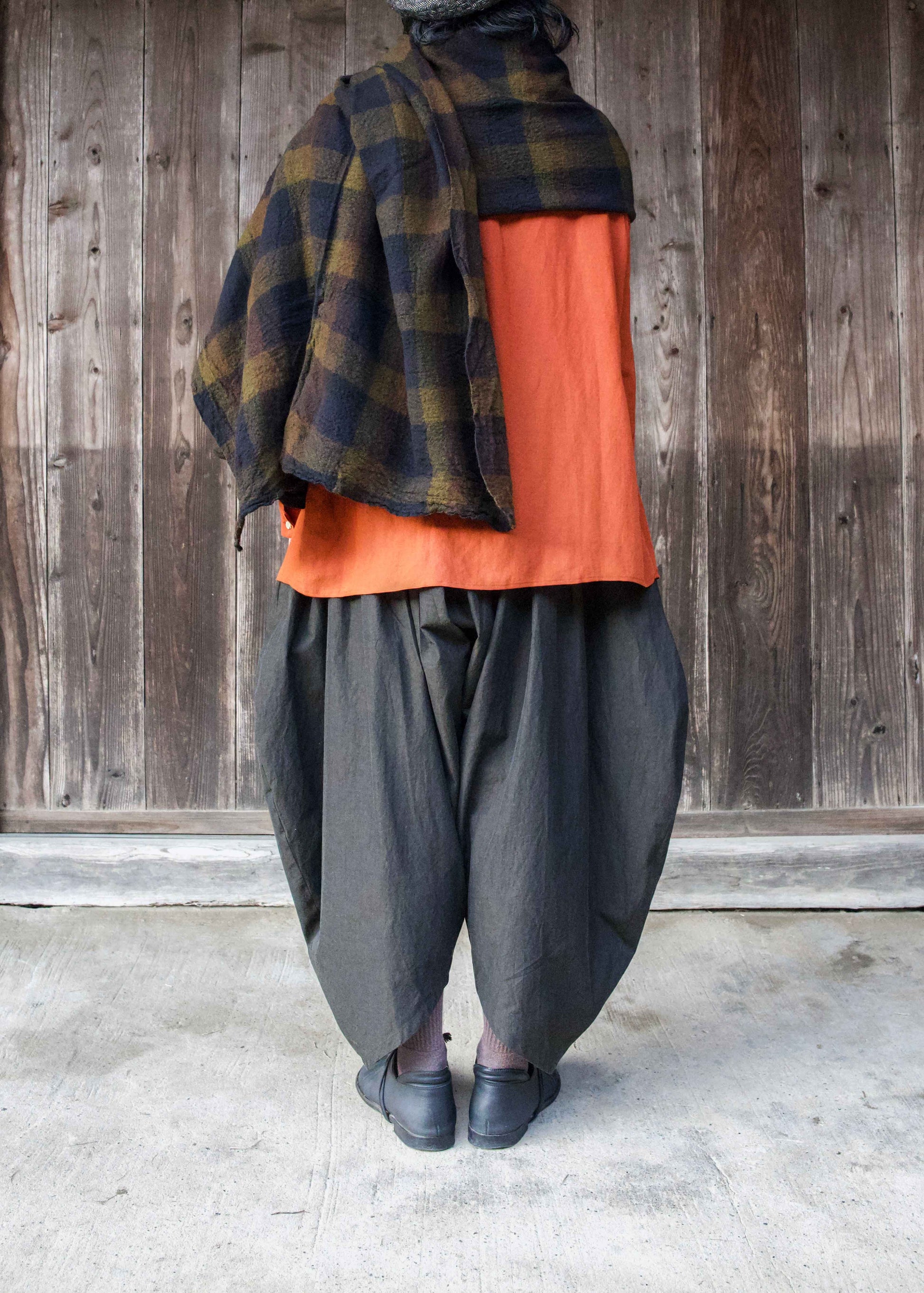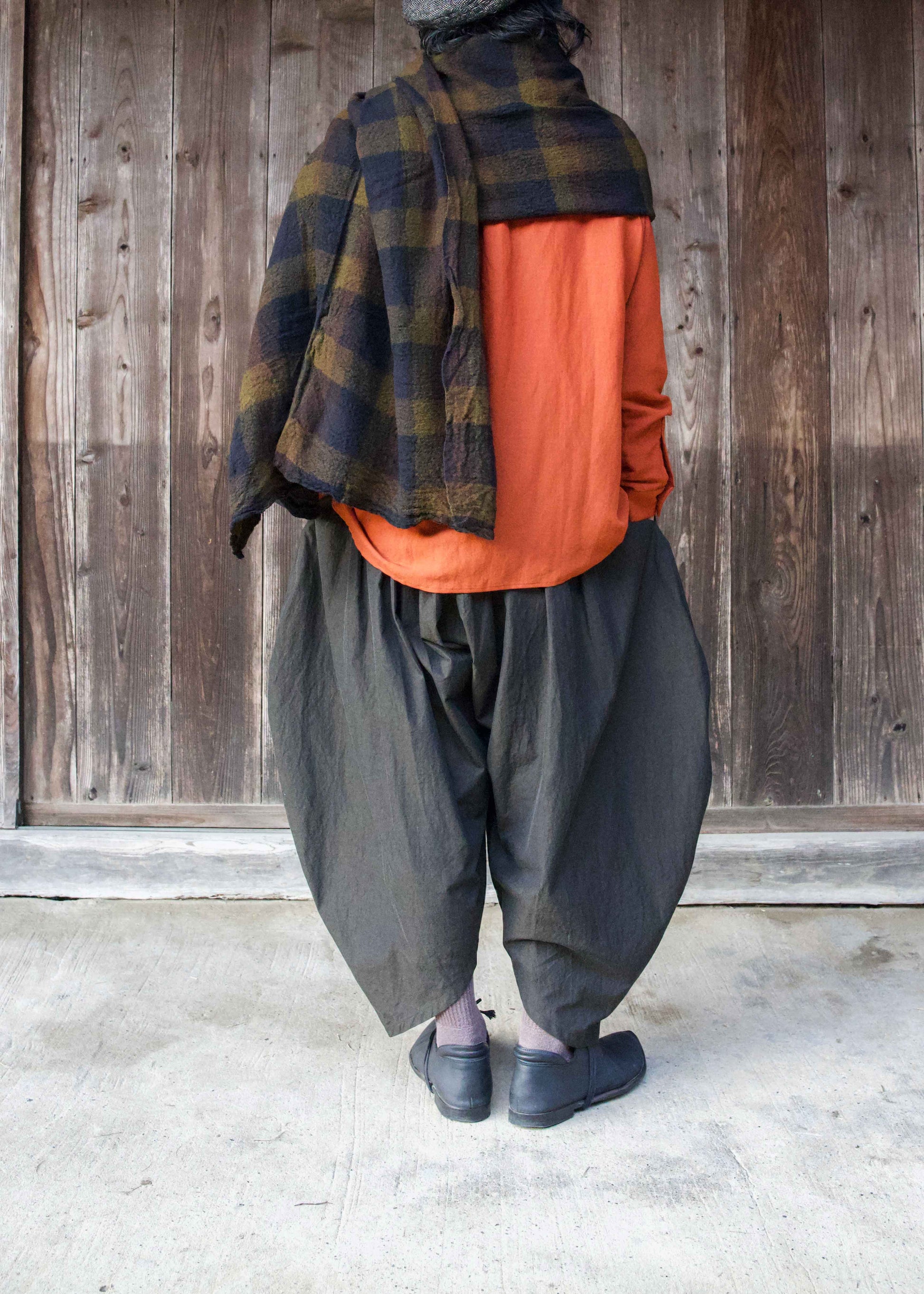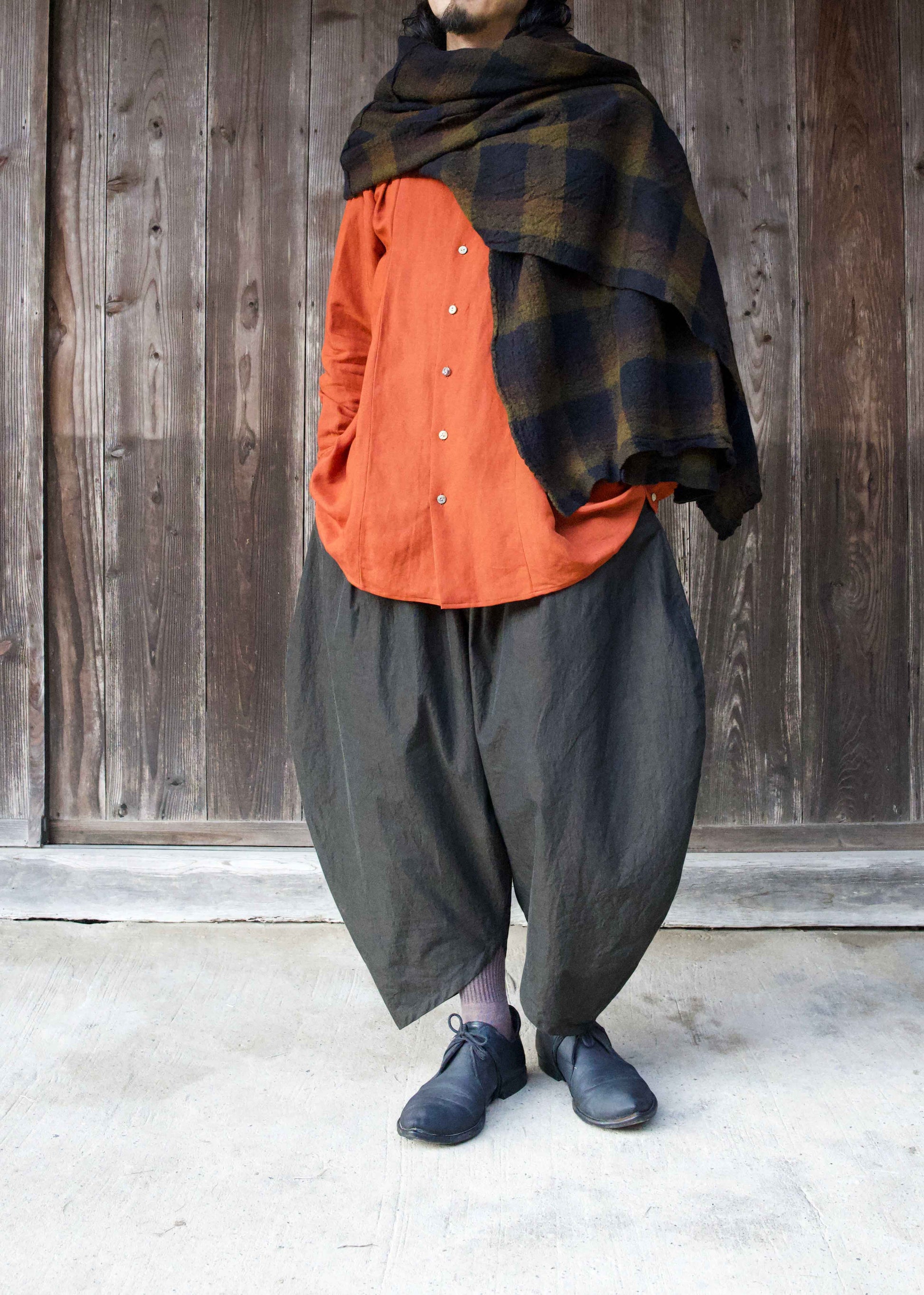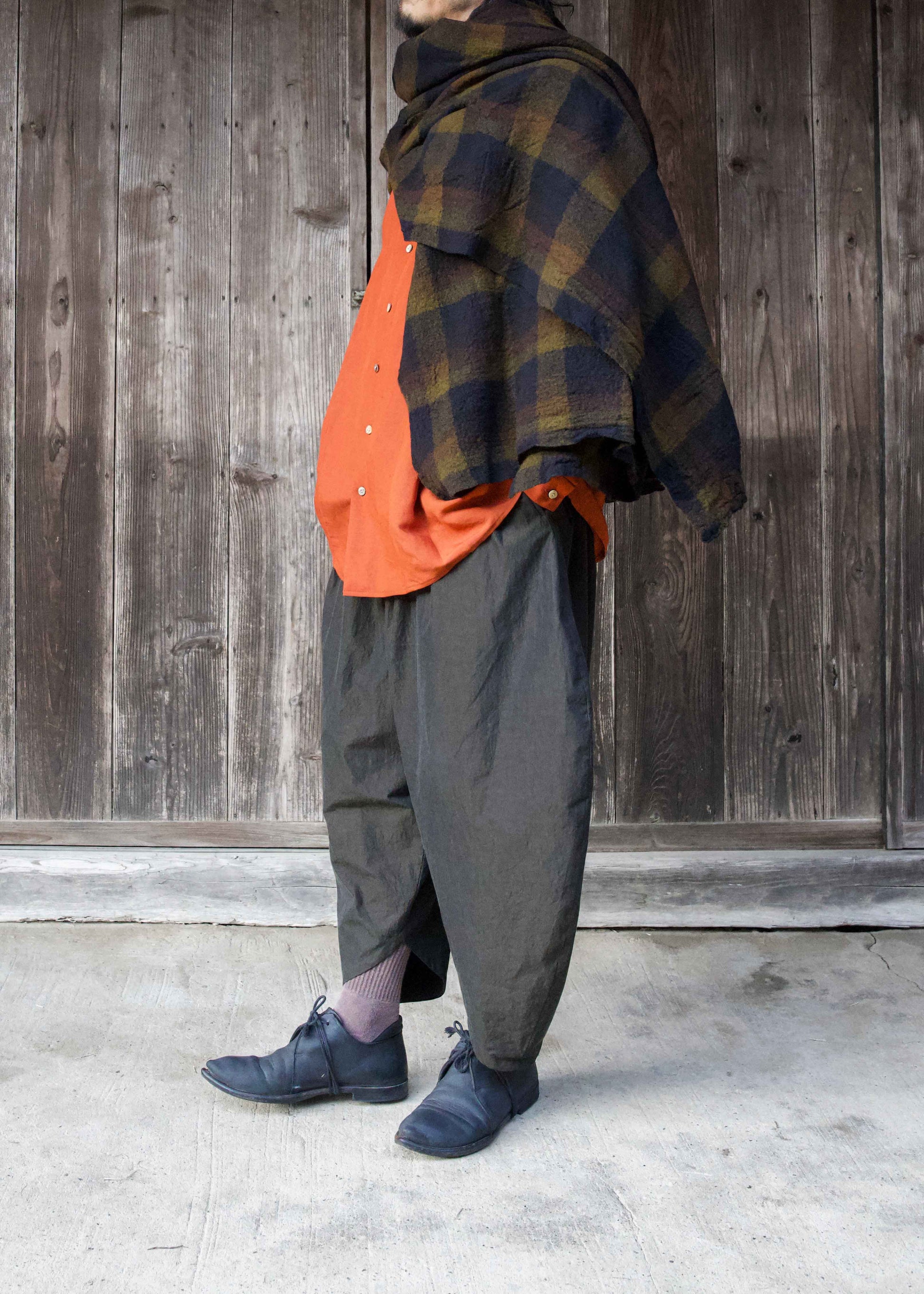 The fabric is woven by a weaver in Nishiwaki City, Hyogo Prefecture, a production center for yarn-dyed cotton. The color chosen from countless threads was apparently "a color they had never woven before," and the overlapping colors of the chambray resulted in a fascinating fabric with depth. The thickness and texture were also discussed, resulting in a one-of-a-kind fabric.